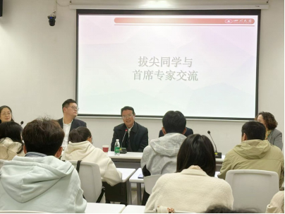 2025年11月8日下午,我院在文学与新闻学院316室锦江书院召开汉语言文学“拔尖计划”首席专家见面会。四川大学杰出教授、文学与新闻学院学术院长曹顺庆教授、李怡教授、“拔尖计划”2024级班主任周维东教授、副院长阿达来提教授出席会议并致辞。见面会由“拔尖计划”课程建设执行主管车祎老师主持。全体2024级、2025级汉语言文学“拔尖计划”学生参加此次见面会。